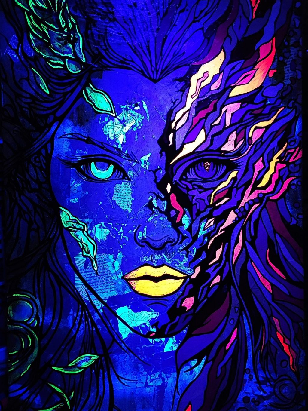 60x80 cm Mixed Media / UV-Leuchtende Farben