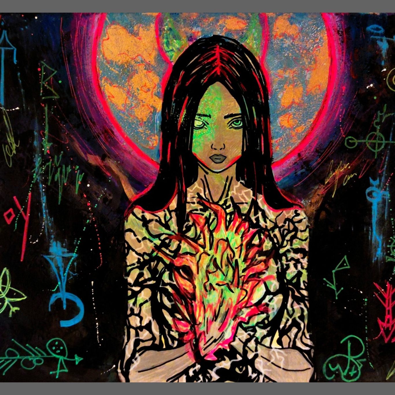 40x40 cm Acryl auf Leinwand / UV-Leuchtende Farben