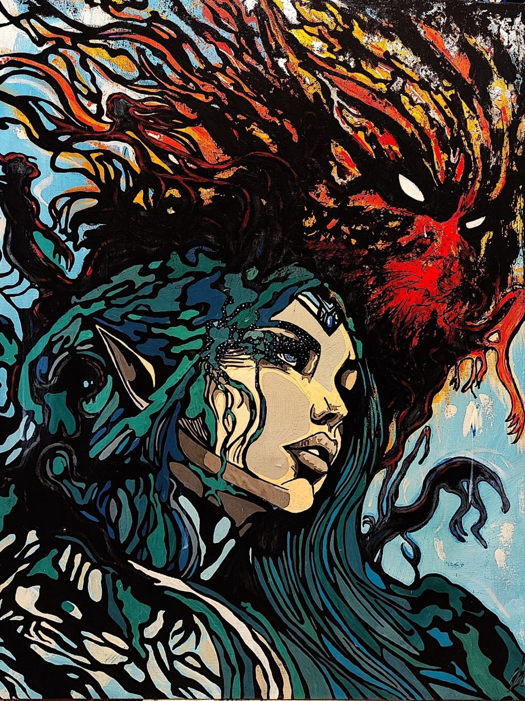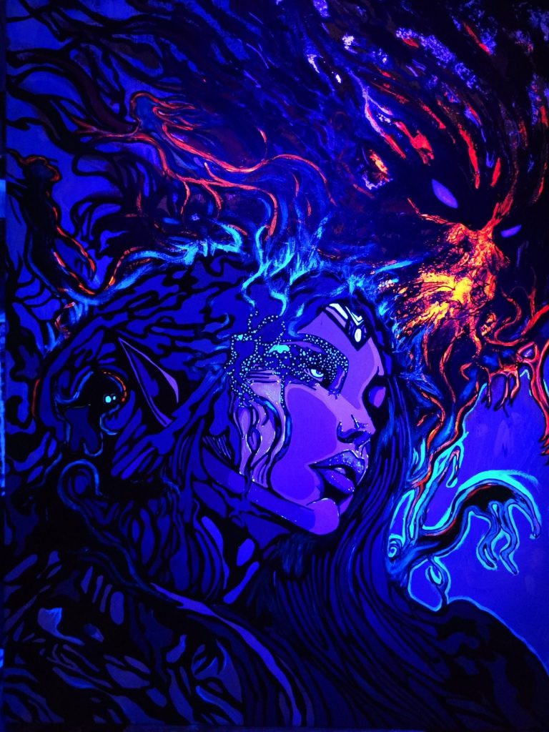 50x70 cm Acryl auf Leinwand / UV-Leuchtende Farben